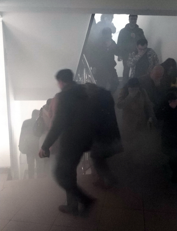 消防通道烟雾逃离演习