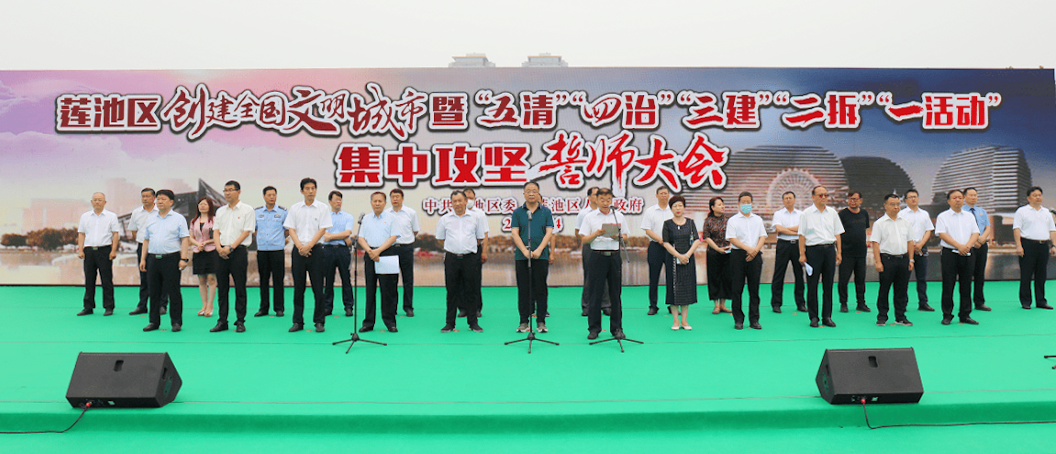 7月14日上午,新利买球作为市级文明单位,参加了由莲池区创城指部在军校广场组织召开的“创建全国文明城市集中攻坚誓师大会”,本次大会有市、区、乡办、行政村相关领导,全区各主管部门负责人,区市场监督管理局、区执法局、区商务局、区人防办等单位,共计1110人到场参会。