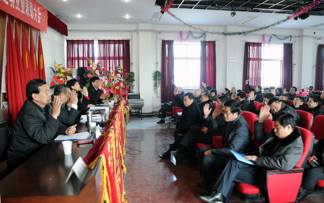 大会在庄严的国歌声中拉开了序幕,首先由新利中国副总经理要保林做《二零一零年度工作总结(草案)》,总会计师于广志做《二零一零年度财务工作报告》,监事会主席闫双彦做《二零一零年度财务审核报告》,副总经理谷进宝做《二零一零年工作安排意见的报告(草案)》,工会主席黄春玲做《二零一零年度职代会工作总结及二零一一年度工作安排报告(草案)》。随后全体与会代表对上述报告进行举手表决,均全票通过。会后,新利中国董事长兼党委书记张兰柱同志做重要讲话,总结了新利中国在二零一零年工作中的经验与不足,激励广大职工、股东代表在新的一年里为企业的快速发展继续作好排头兵、发挥表率作用,与广大员工一起为新利中国贡献力量。